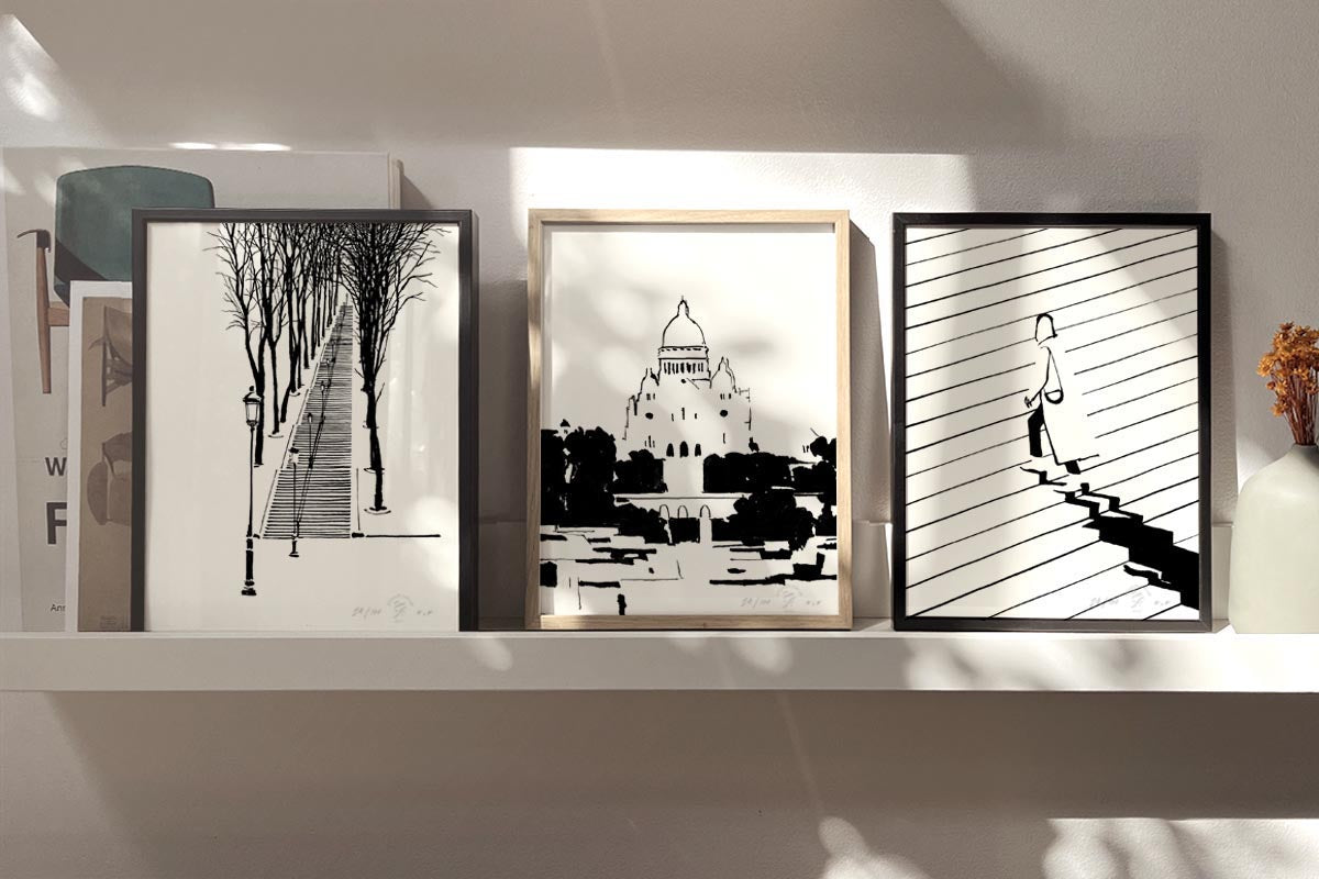 Service d'encadrement disponible à Paris uniquement. Notre option d'encadrement sur mesure est disponible pour un retrait à notre atelier parisien. Veuillez noter que nous n'expédions pas de tirages encadrés. Prenez contact par email pour voir les options d'encadrement.