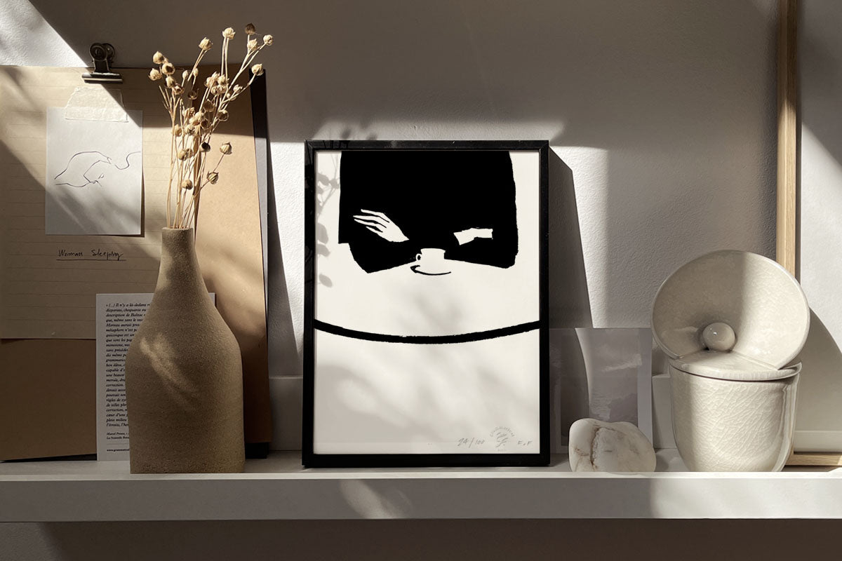 Veuillez noter que tous nos dessins en édition limitée sont imprimés sur du papier, un matériau fragile, inflammable et naturel. Pour préserver votre tirage, évitez toute exposition à la chaleur, à la lumière et à l'humidité. La blancheur du papier peut varier avec le temps. Nous sélectionnons des papiers exceptionnels, respectueux de l'environnement et réputés pour leur forte teneur en fibres recyclées. De légères variations de teintes peuvent donc apparaître sur les tirages. Le papier est sans acide, sans chlore et sans métaux lourds.