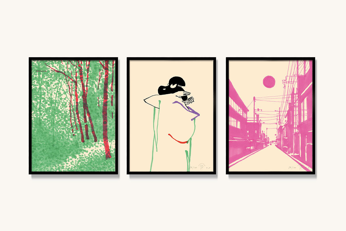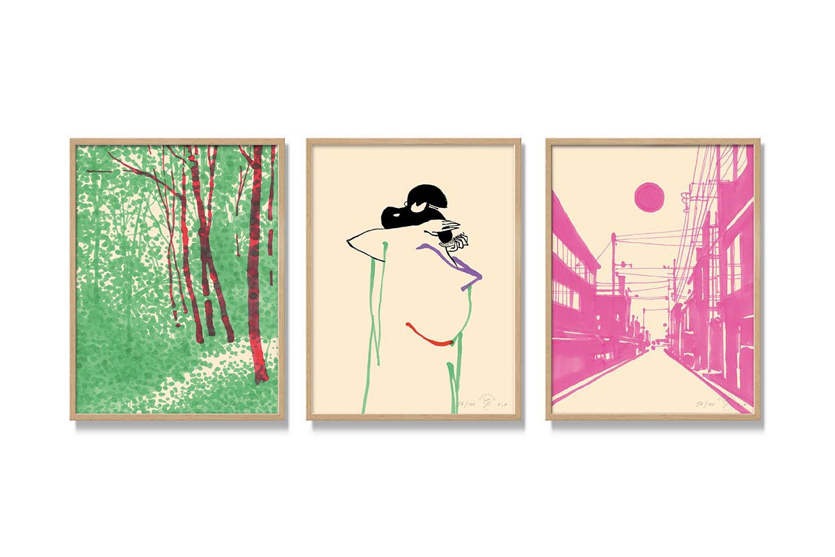 A limited edition of a set of 3 delicate drawings in colors, taken from the book Somewhere in Tokyo.